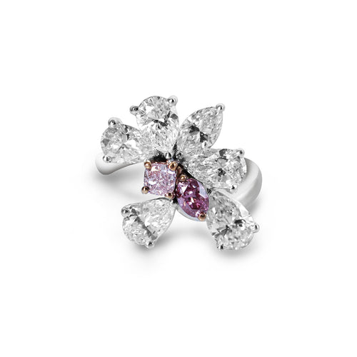 Fancy Purplish Pink and White multi-shaped Diamond Ring