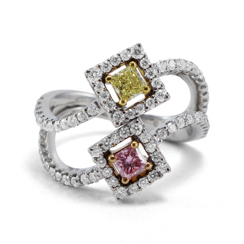 Fancy Intense Pink & Yellow Diamond Crossover Ring