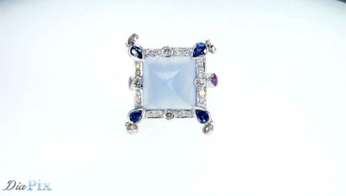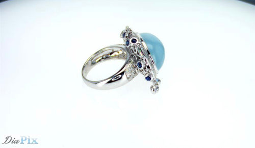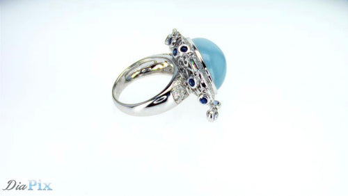 Ring 18KWGOLD s/w Blue Chalzedoni &Sapphire &Diamond
