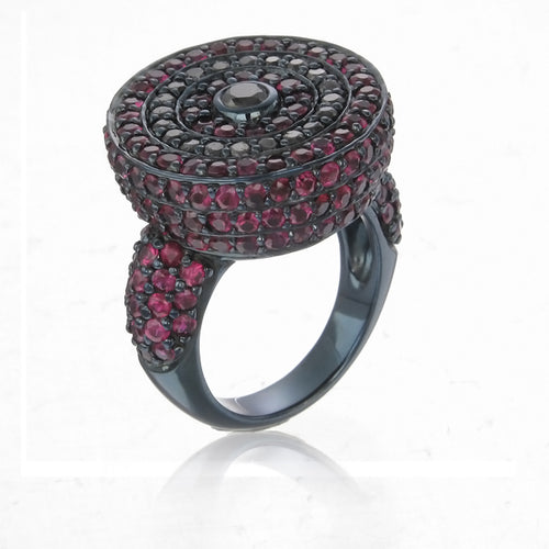 Ring 18KW GOLD s/w Ruby &Black Diamond